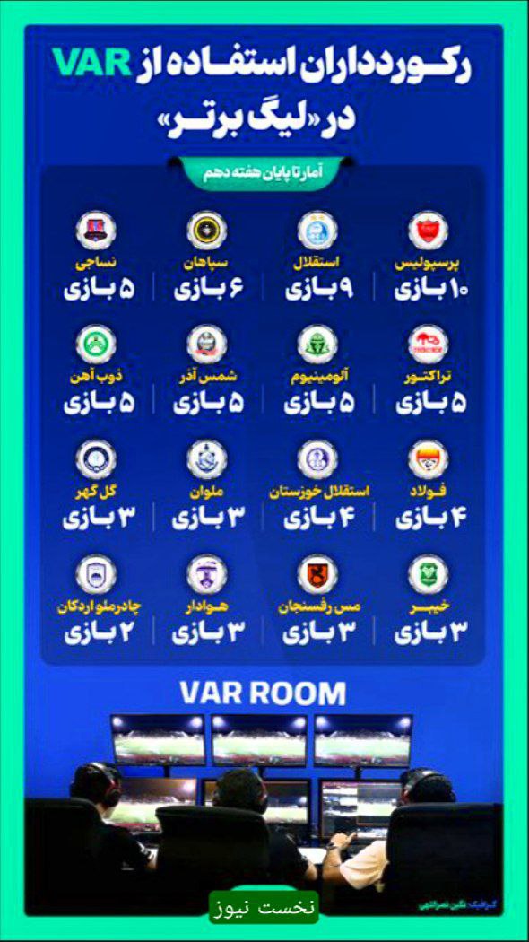 جزئیات تازه از پرونده پژمان جمشیدیبه گزارش نخست نیوز، باشگاههای زیادی به تقسیم ناعادلانه VAR اعتراض داشتند چرا که این سیستم در همه بازیها استفاده نمیشود. در این اینفوگرافیک تعداد سهم هر تیم از VAR پس از گذشت ۱۰ هفته از لیگ برتر را بررسی کردیم.