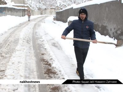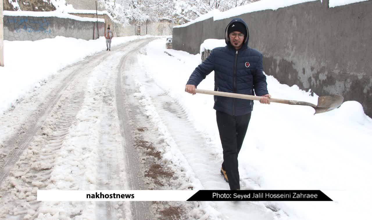 تلاش رفتگران سختکوش محله قهوه خانه عرب مشهد در روز برفی